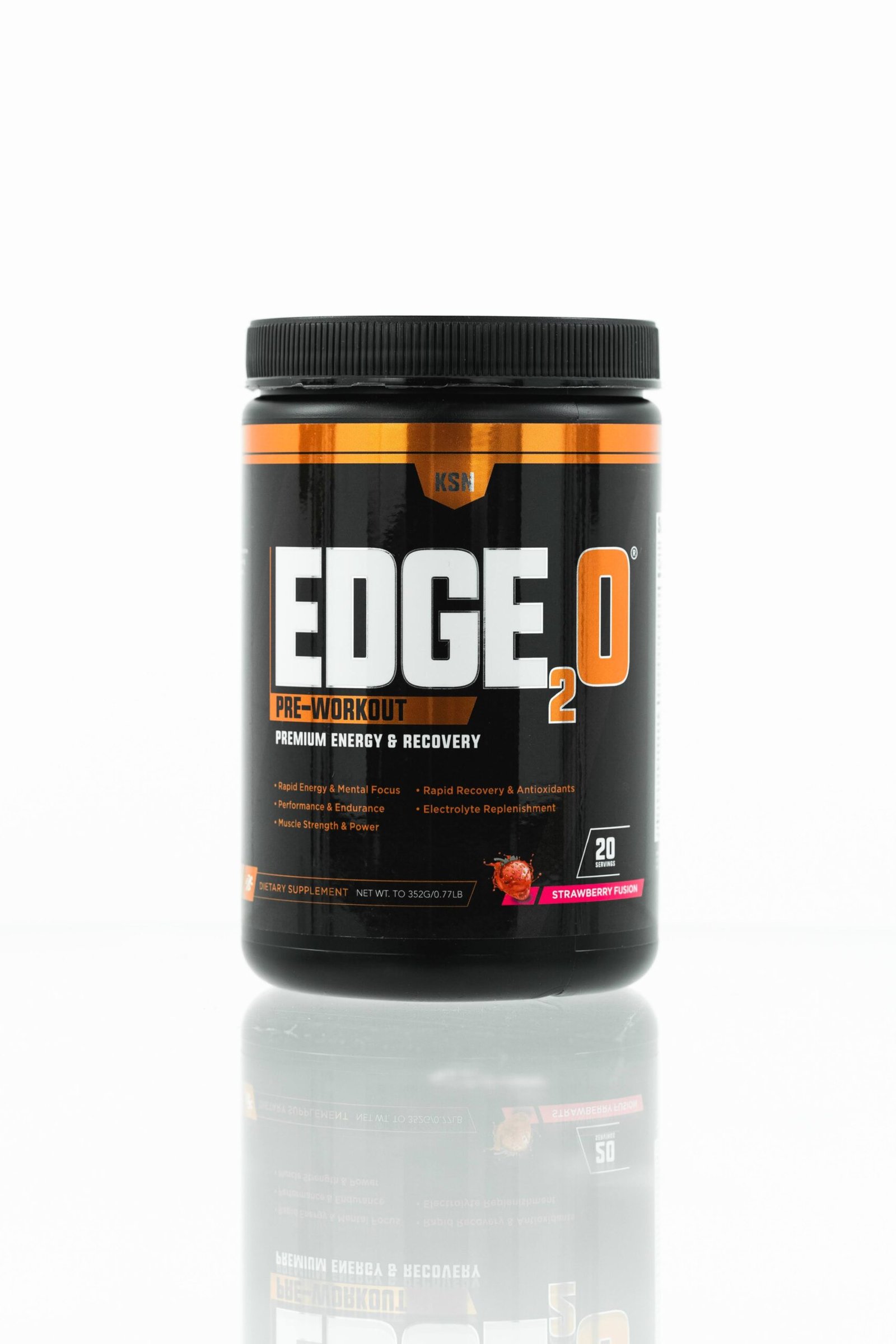 EDGE2O™ PRE-WORKOUT IS A PREMIUM ENERGY AND RECOVERY FORMULA WITH ESSENTIAL AMINO ACIDS, ANTIOXIDANTS, AND ELECTROLYTE REPLENISHMENT COMPLEX OF THREE (3) PROPRIETARY BLENDS. IT IS AN AMINO ACID BASED ENERGY DRINK, UTILIZING SPECIFIC AMINO ACIDS TO GENERATE REAL ENERGY AND RECOVERY, WHILE PROVIDING ELECTROLYTES AND ANTIOXIDANTS TO COMBAT MUSCLE FATIGUE AFTER INTENSE TRAINING.